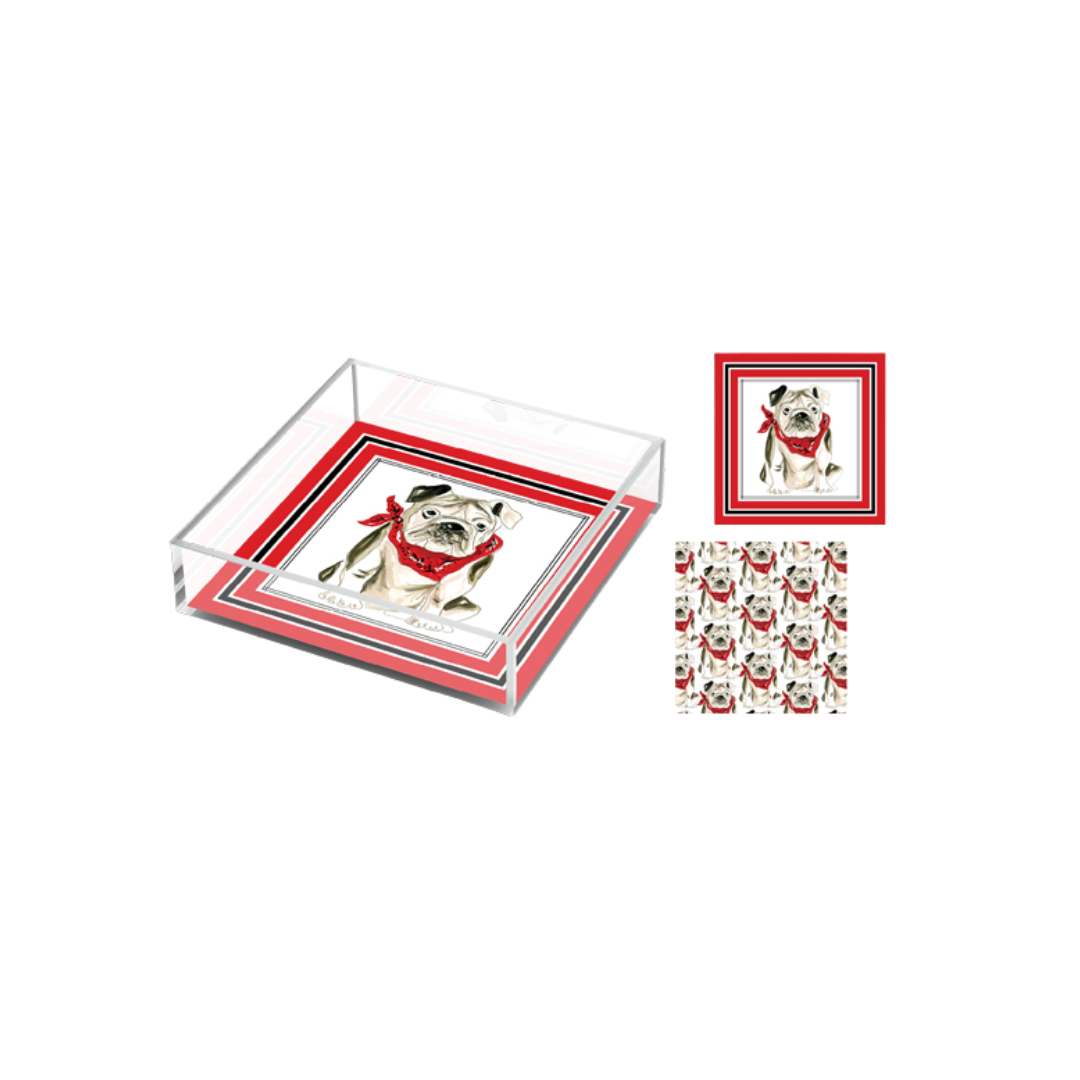 6x6 Acrylic Tray - Bulldog with Red & Black Bandana