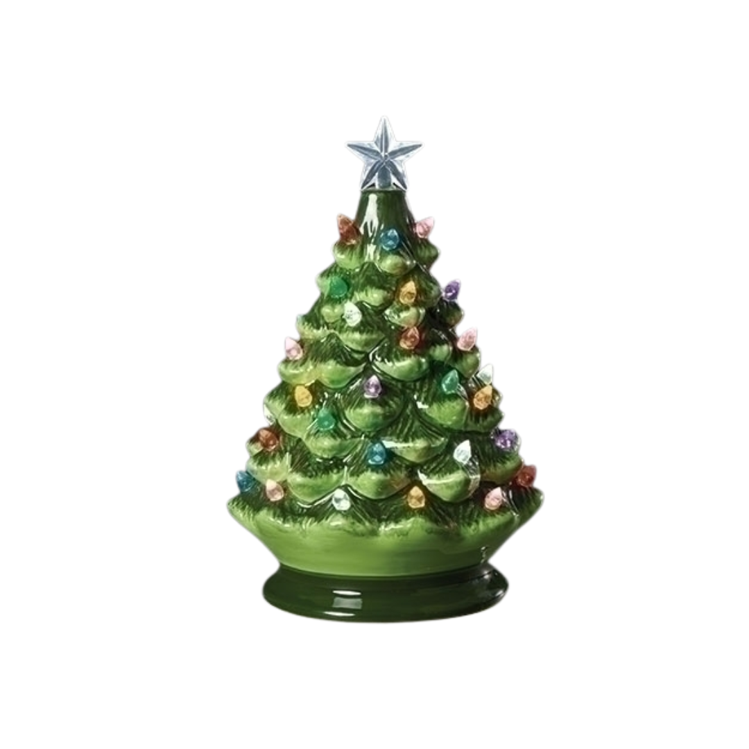 8" Lighted Ceramic Rotating Tree