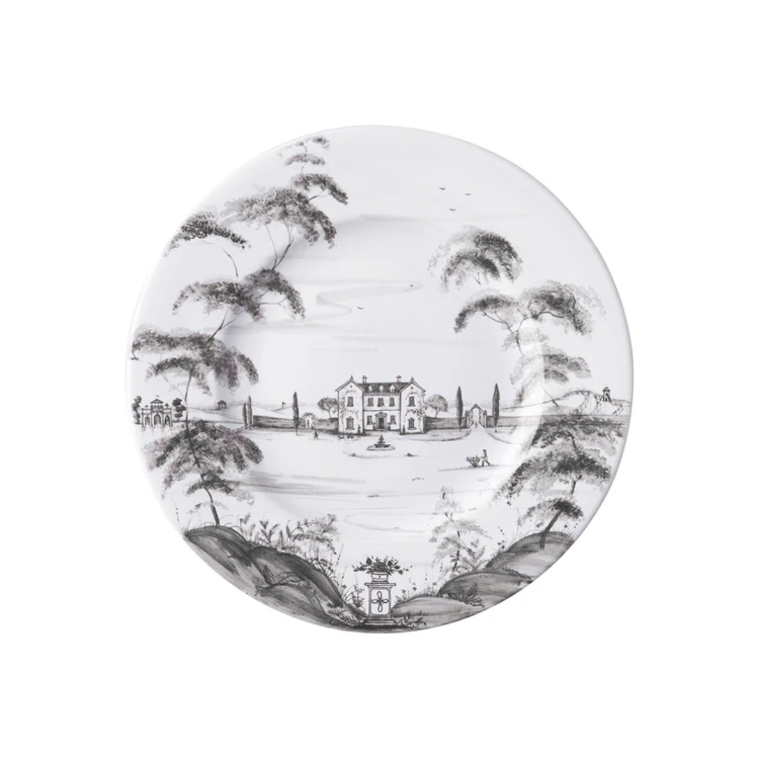From our Country Estate Collection- Welcome to the main house, where friends and family have gathered for generations and country food is raised to a point of fine art. A feast for the eyes and table, our stately dinner plate is a portrait of the inviting and bustling life you can explore on the estate and where you can always find something delectable bubbling away in the kitchen. Featuring: the Main House, Boathouse, and Apple Orchard.