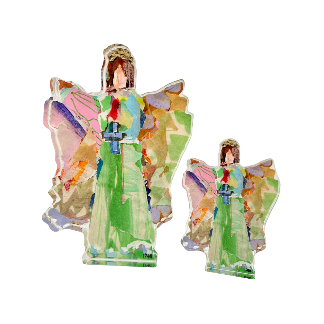 Harper is available in 2 sizes and is a fee-standing acrylic angel.