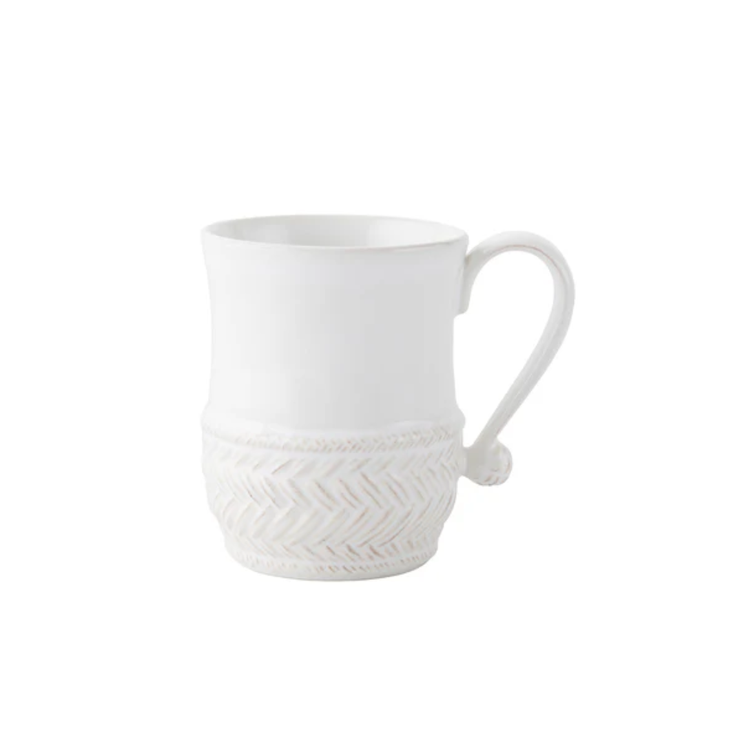 From our Le Panier Collection - For a morning cup of cafe au lait or steaming tea - after late-night feasting with friends - this mug suits masculine and feminine sensibilities equally. A basket-weave motif at the base lends a traditional air while a graceful handle is finished with a sailor's knot.